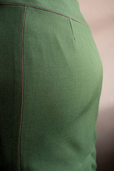 The gabardin skirt perfectly fits with its material, colour and cut to the jacket of the same title. You wil be nicely pleased by high precision of sewing and by the material which is resistant to dirt . The suit must be worn with beaming smile combined with leather accessories of happier colors.