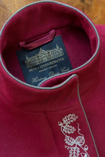 Bordeaux is a colour of life, and in a combination with a cappuccino embroidery, it tempts you to combine it with a luxurious high-density silk chenille skirt, which may be found after clicking on the SKIRTS icon. To complement the bordeaux paletot, we recommend high light-coloured gloves and leather accessories. It is also very beautiful to wear the paletot as an overcoat with an evening dress of an appropriate colour.