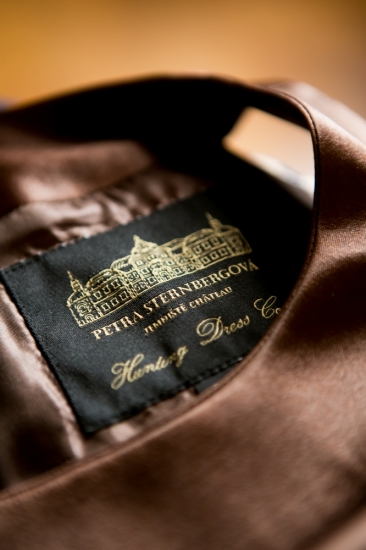 - Kleid in Gold, Elfenbein und Lila (beide Schnitte): 65% Baumwolle, 35% Seide 264g/m, Futter 100% PES 100g/m, Preis: 6 900CZK