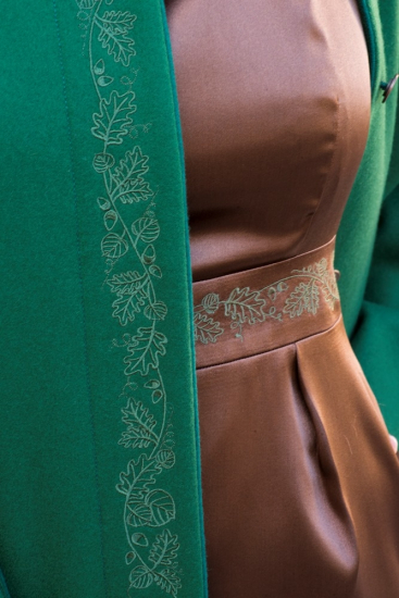 SET VON LUXURIÖSEN KLEIDERN: sowohl das Kleid als auch den Mantel werden wir für Sie gerne auch aus der luxuriösen zertifizierten Seide nähen. Auf dem Schloss Jemniště stehen manche schon zur Verfügung, aber die Kundinnen können sich während des verabredeten Besuchs aus der Farbenmustermappe die gewünschte Farbe aussuchen.