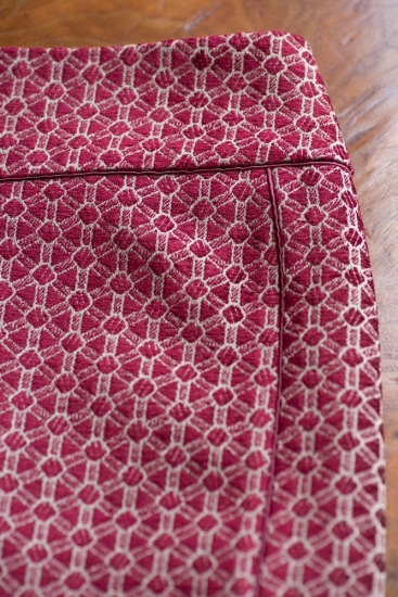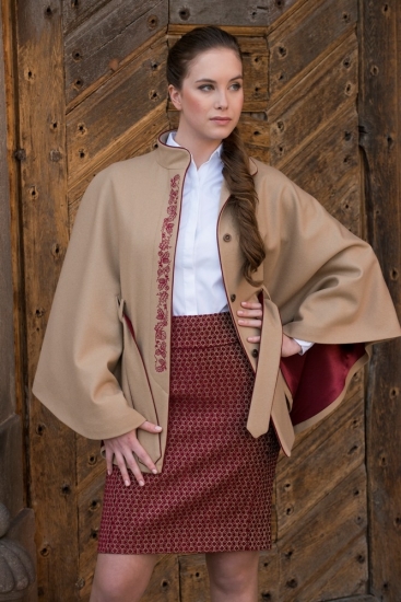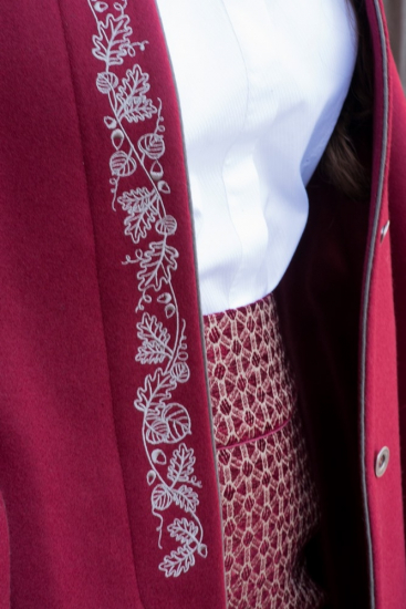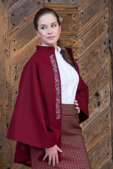 Der Rock passt wunderbar zu dem Bordeaux-Cappuccino-Paletot (für eine hellere Variante wählen Sie den Cappuccino-Paletot mit der Bordeaux-Stickerei). Beide Kleidungsstücke entsprechen am angenehmsten dem Frühlings- und Herbstwetter und es kommt ihnen die Kombination mit Lederschuhen und Lederaccessoires zugute. Das buntere Muster des Rocks wird dann von der größeren Fläche des einfarbigen Paletots ausgewogen und das Ganze wird sowohl Sie als auch diejenigen erfreuen, die die Schönheit der geschmackvoll kombinierten Kleidungsstücke zu schätzen wissen. Die luxuriöse Chenille mit einer hohen Grammatur fühlt sich dazu weich und geschmeidig an.