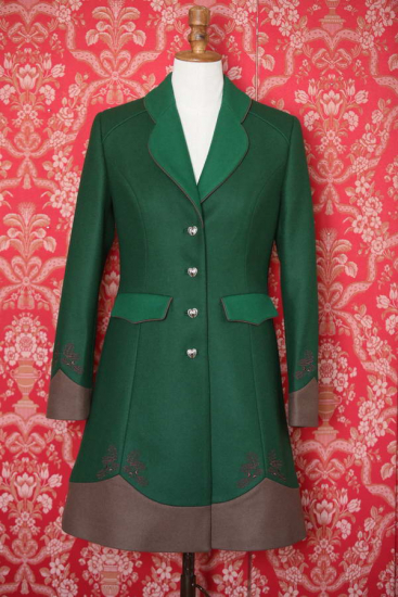 Erwartet man, dass Sie in Grün kommen? Erlauben Sie sich den Luxus, zwei Grüntöne durch Braun zu unterstreichen, und Sie werden sich wunderbar fühlen. Der Mantel eignet sich für Spaziergänge, Ausstellungen, Ausflüge, repräsentative Teile von Treiben und Jagden, Messen, Besuche und auch als passende Bekleidung für die Begleitung von Partnern oder Freunden zu gesellschaftlichen Jägerveranstaltungen. Das kontrastierende Futter unterstreicht den Zauber des Augenblickes auch im Moment des Ablegens der Bekleidung. Die Futter wechseln wir in zwei Farben ab: Grün oder Braun.