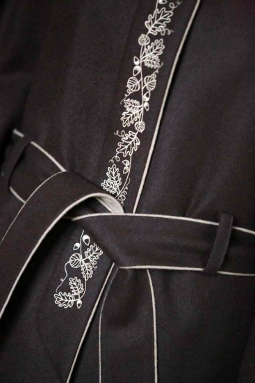 Lieben Sie Braun? In den braunen Wollpaletot schlüpfen Sie wie in Schokolade und die abstechende Cappuccino-Stickerei wird Sie schön schmücken. Der Wollpaletot eignet sich für Spaziergänge, Ausstellungen, Ausflüge, repräsentative Teile von Treiben und Jagden, Messen, Besuche und auch als passende Bekleidung für die Begleitung von Partnern oder Freunden zu gesellschaftlichen Jägerveranstaltungen. Wenn Sie wirklich bezaubernd aussehen möchten, nehmen Sie zum Paletot auch höhere Lederhandschuhe. Im Falle von Interesse finden Sie hier drei Farben von Lederhandschuhen (Kognak, Cappuccino, dunkleres Braun), nachdem Sie auf die Ikone HANDSCHUHE klicken. Es ist sehr elegant, Kontrastfarben auszuwählen: Zum dunkelbraunen Paletot sehen Cappuccino- oder einfach hellere Handschuhe wunderschön aus. Das kontrastierende Futter unterstreicht den Zauber des Augenblickes auch im Moment des Ablegens der Bekleidung. Wir nähen jedoch auch Futter Ton in Ton ein.