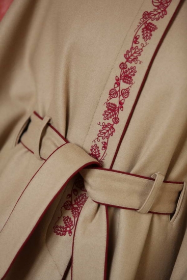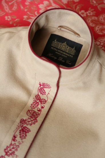 Milde, gefühlvoll wärmende Farbkombination. Der Wollpaletot ist geeignet für Spaziergänge, Ausstellungen, Ausflüge, repräsentative Teile von Treiben und Jagden, Messen, Besuche und auch als passende Bekleidung für die Begleitung von Partnern oder Freunden zu gesellschaftlichen Jägerveranstaltungen. Wenn Sie wirklich bezaubernd aussehen möchten, nehmen Sie zum Paletot auch höhere Lederhandschuhe. Im Falle von Interesse finden Sie hier drei Farben von Lederhandschuhen (Kognak, Cappuccino, dunkleres Braun), nachdem Sie auf die Ikone HANDSCHUHE klicken. Es ist sehr schön, Kontrastfarben auszuwählen: Zum Cappuccino-Paletot sehen dunklere Handschuhe wunderschön aus. Das kontrastierende Futter unterstreicht den Zauber des Augenblickes auch im Moment des Ablegens der Bekleidung. Wir nähen jedoch auch Futter Ton in Ton ein.