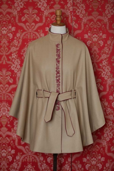 Wollpaletot - Cappuccino mit Bordeaux