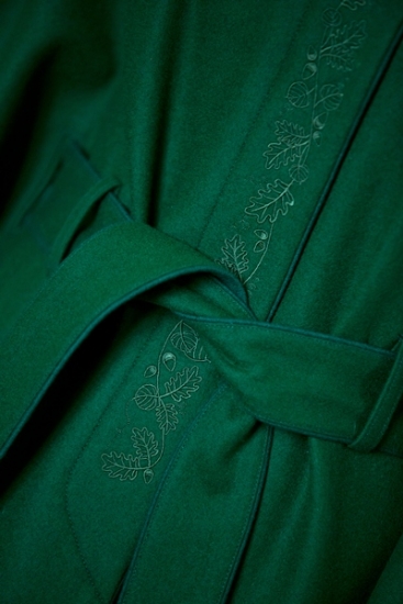 Gefallen Ihnen Farbkombinationen auf anderen, aber Sie selber wagen sie nicht? Oder Sie wagen sie, aber Sie wollen auf der konkreten Veranstaltung nicht herausragen? Dann wählen Sie Grün Ton in Ton aus und ergänzen Sie die schlichte Eleganz durch geschmackvolle Accessoires. Der Wollpaletot ist geeignet für Spaziergänge, Ausstellungen, Ausflüge, repräsentative Teile von Treiben und Jagden, Messen, Besuche und auch als passende Bekleidung für die Begleitung von Partnern oder Freunden zu gesellschaftlichen Jägerveranstaltungen. Wenn Sie wirklich bezaubernd aussehen möchten, nehmen Sie zum Paletot auch höhere Lederhandschuhe. Im Falle von Interesse finden Sie hier drei Farben von Lederhandschuhen (Kognak, Cappuccino, dunkleres Braun), nachdem Sie auf die Ikone HANDSCHUHE klicken. Es ist schick, Kontrastfarben auszuwählen: Zum grünen Paletot sehen dunkelbraune oder Kognak-Handschuhe wunderschön aus. Das sehr elegante grüne Satinfutter unterstreicht den Zauber des Augenblickes auch im Moment des Ablegens der Bekleidung.